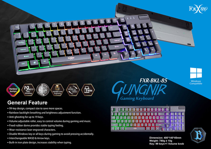 Fixed rubber dome provide stable typing feeling.