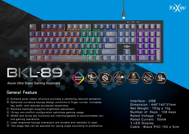 Rainbow backlight supports breathing light effects and brightness adjustment.