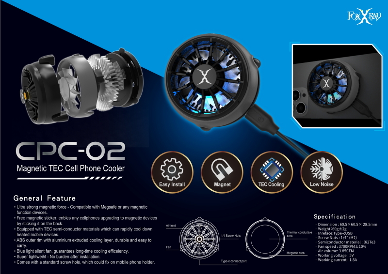 Equipped with TEC semi-conductor materials which can rapidly cool down heated mobile devices.
