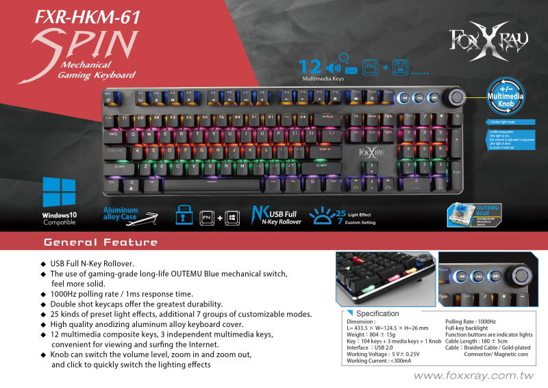 The use of gaming-grade long-life OUTEMU Blue mechanical switch, feel more solid.