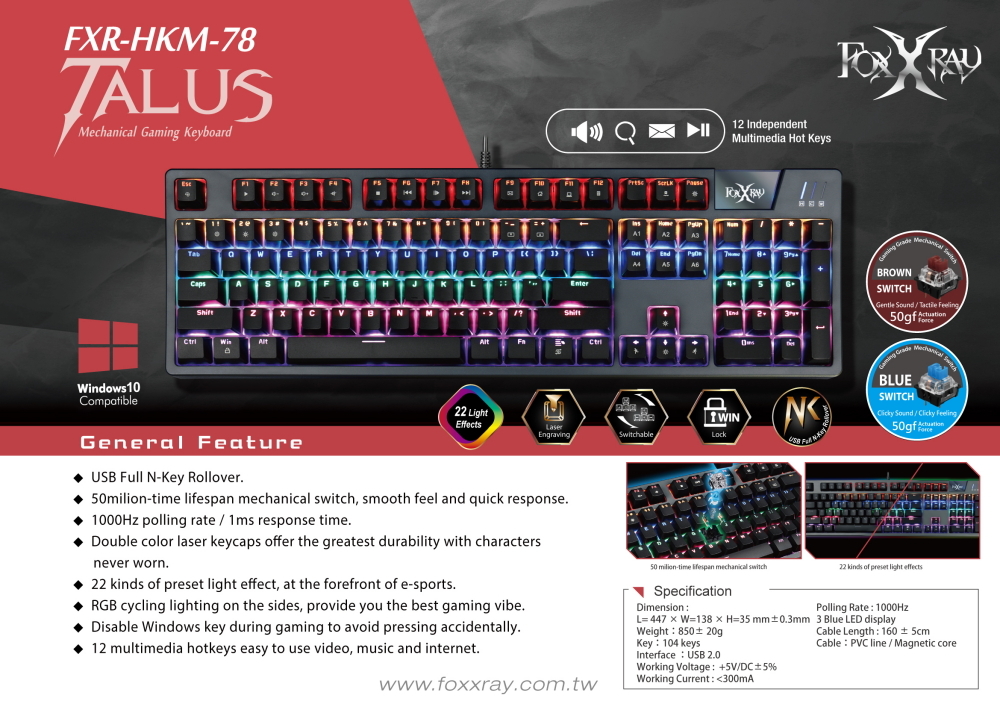 50milion-time lifespan mechanical switch, smooth feel and quick response.