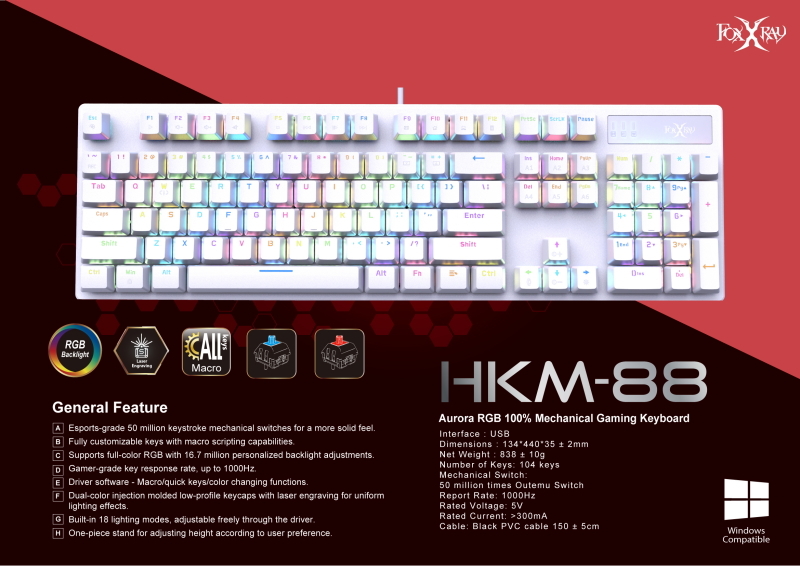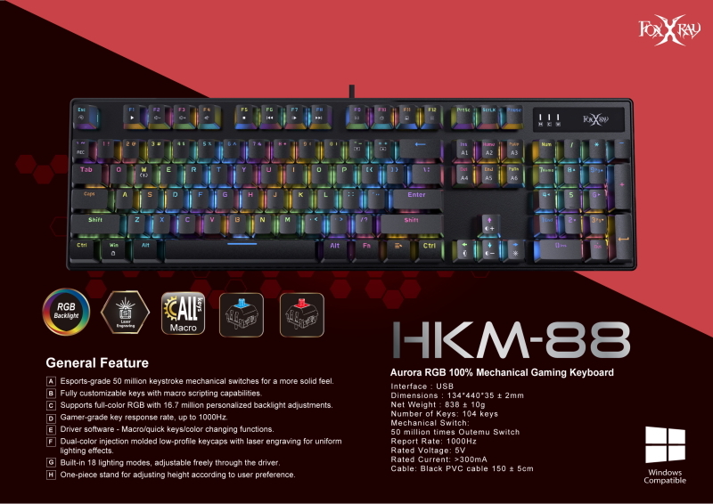 Esports-grade 50 million Outemu mechanical switches for a more solid feel.