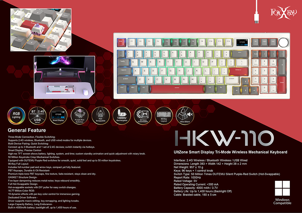 ▶PBT Keycaps, Durable & Oil-Resistant.