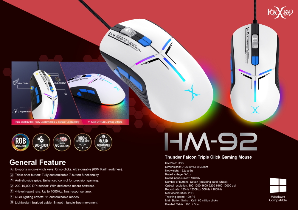 ▶E-sports micro-switch keys: Crisp clicks, ultra-durable (60M Kailh switches).