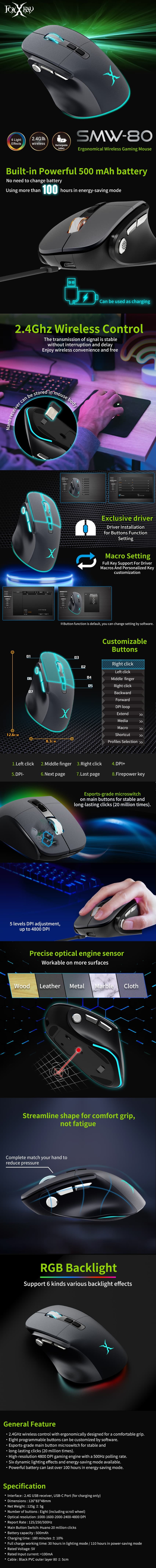 High-resolution 4800 DPI gaming engine with a 500Hz polling rate.