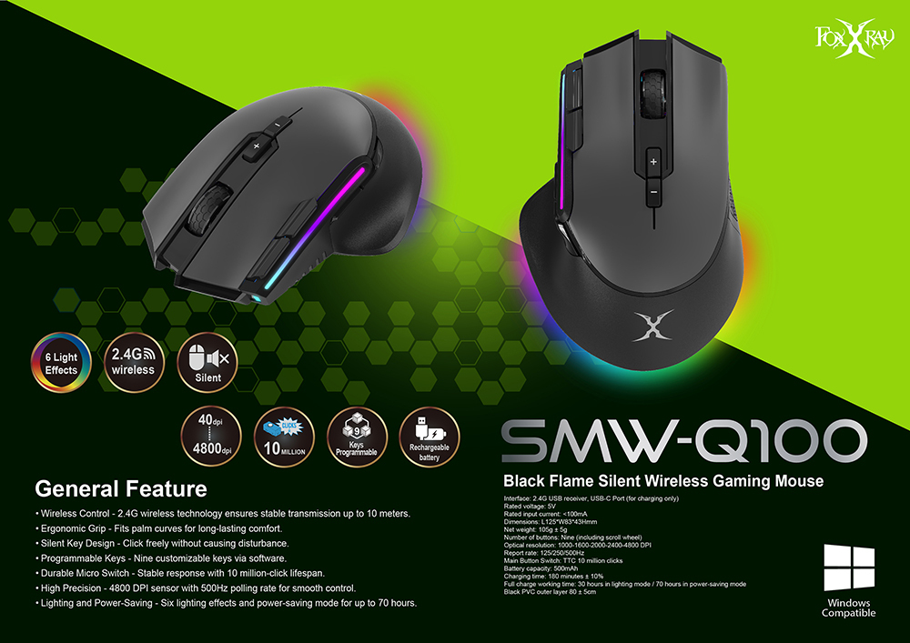 ▶Programmable Keys - Nine customizable keys via software.