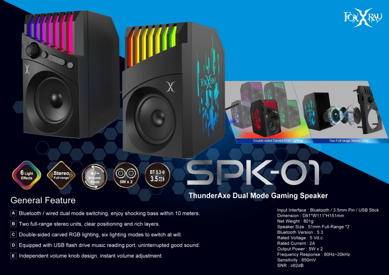 Double-sided carved RGB lighting, six lighting modes to switch at will.