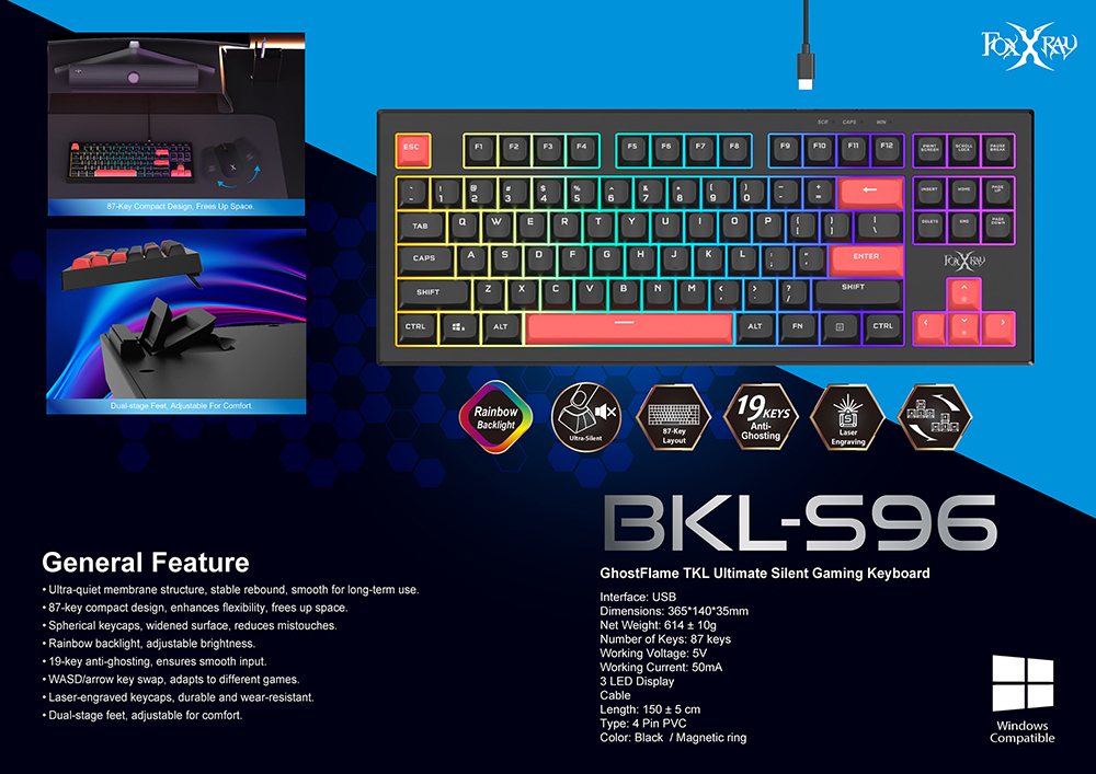 ▶Spherical keycaps, widened surface, reduces mistouches.