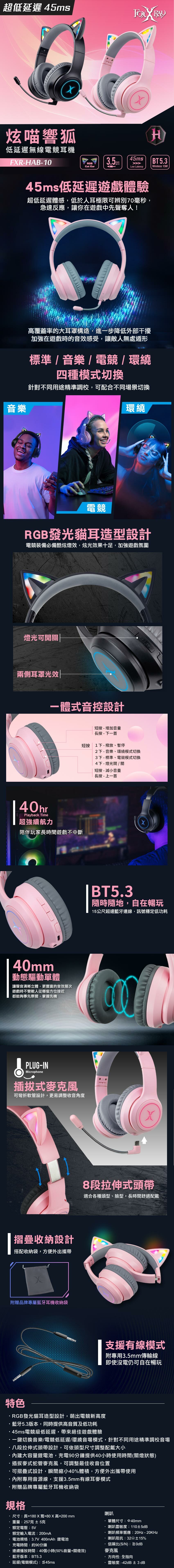 ▶RGB發光貓耳造型設計,萌出電競新高度。