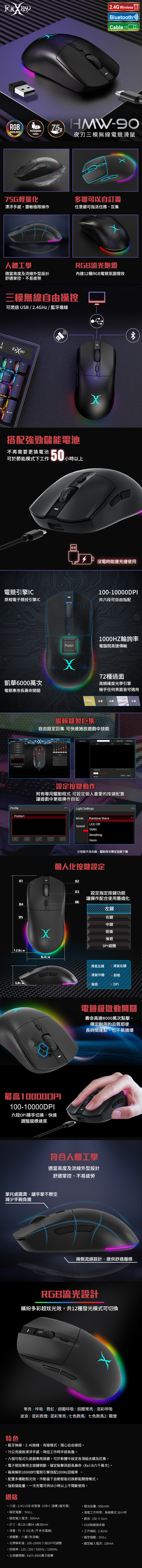 ▶藍牙無線、2.4G無線、有線模式,隨心自由操控。