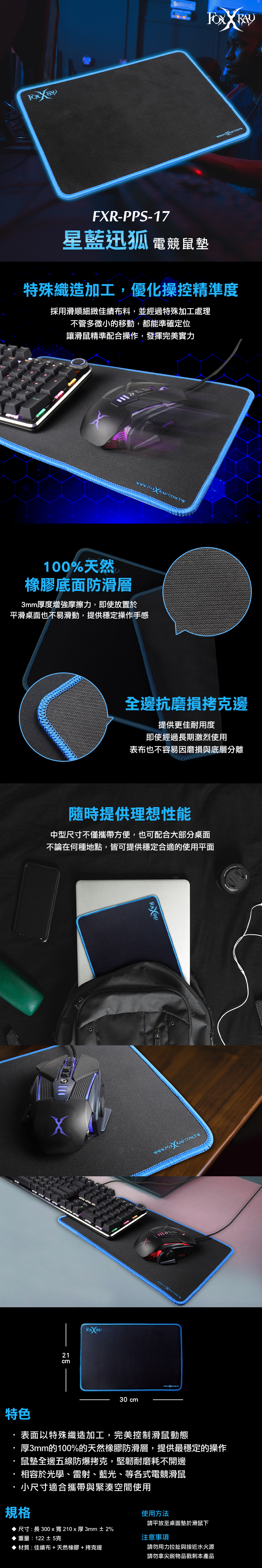 FXR-PPS-17 星藍迅狐防潑水電競鼠墊