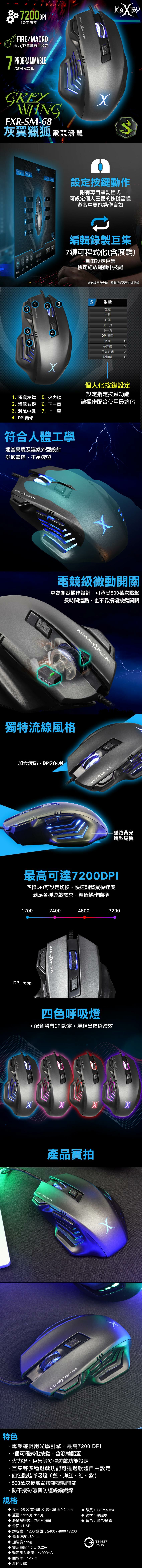 ▶專業遊戲用光學引擎,最高7200 DPI。