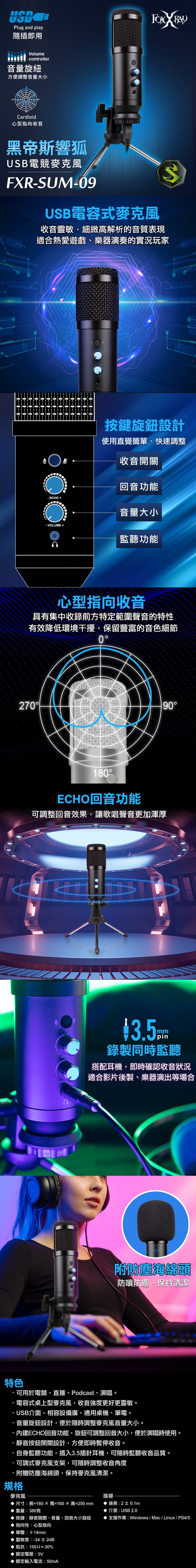FXR-SUM-09 黑帝斯響狐USB電競麥克風